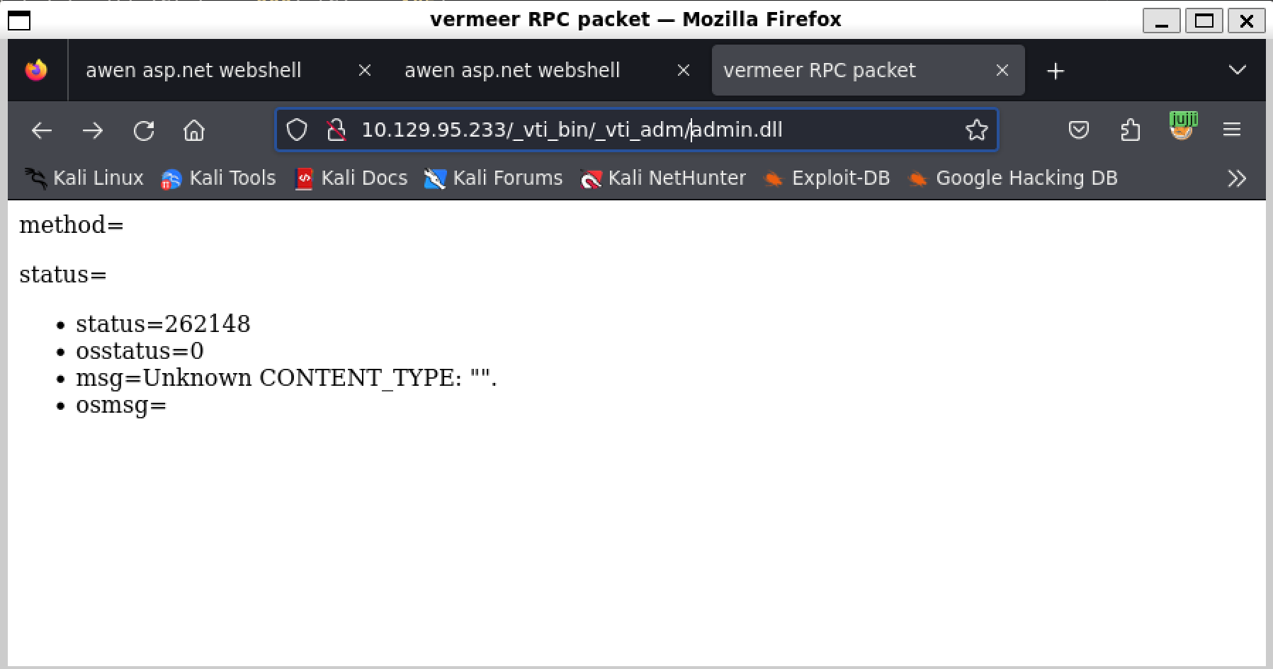 [+] [26][200][195b] - http://10.129.95.233/_vti_bin/_vti_adm/admin.dll