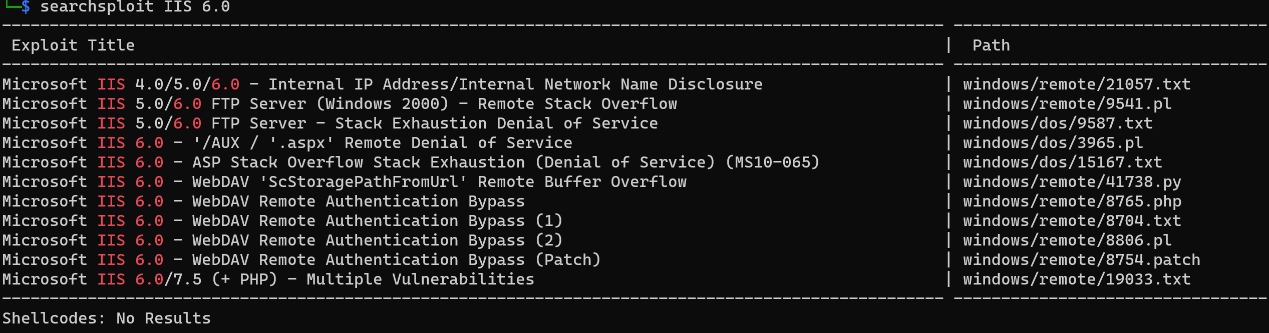 다시 OS 정보(IIS 6.0)로 공격을 시도해본다.