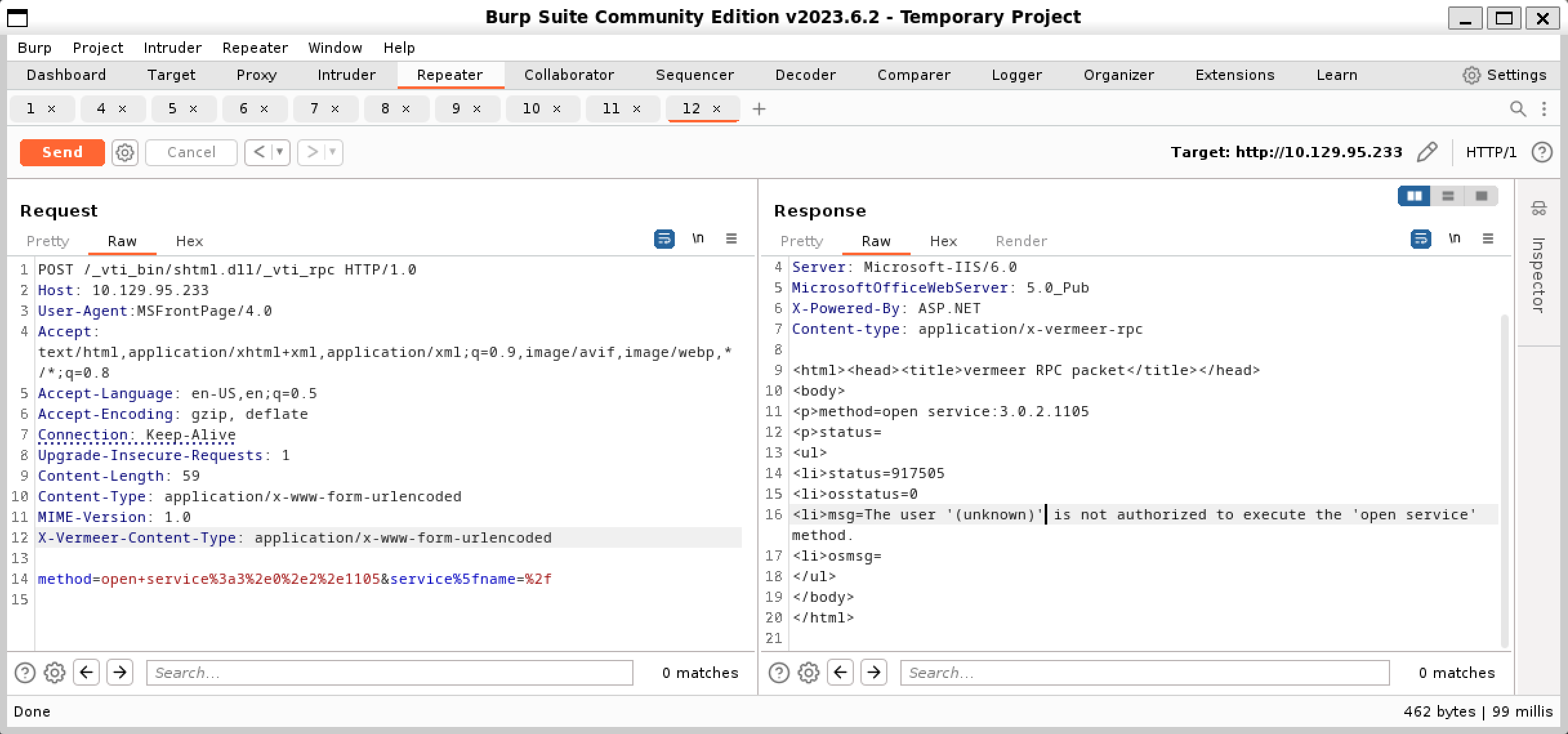 [+] [2][200][195b] - http://10.129.95.233/_vti_bin/_vti_aut/author.dll
